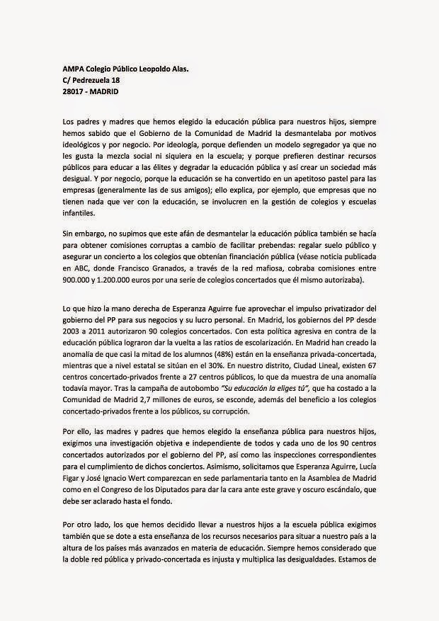Adjuntamos una carta que redactamos, relacionada con los lamentables asuntos de corrupción que afectan a algunos colegios concertados. Las noticias fueron publicadas en febrero