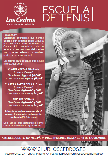 Sin categoríaESCUELA DE TENIS 22 octubre, 2015 ampaleopoldo Oferta de la escuela de Tenis de los Cedros para familias socias del AMPA Compártelo: Compartir en X (Se abre en una ventana nueva) X Comparte en Facebook (Se abre en una ventana nueva) Facebook Me gusta Cargando... Relacionado