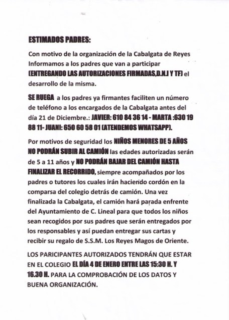 Sin categoríaIMPORTANTE: INFORMACIÓN CABALGATA 2016 16 diciembre, 2015 ampaleopoldo Estimadas familias: Os dejamos nota informativa acerca de las instrucciones y desarrollo de la Cabalgata 2016, de especial interés para aquellos que vais a participar en ella. Compártelo: Compartir en X (Se abre en una ventana nueva) X Comparte en Facebook (Se abre en una ventana nueva) Facebook Me gusta Cargando... Relacionado