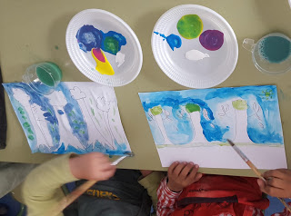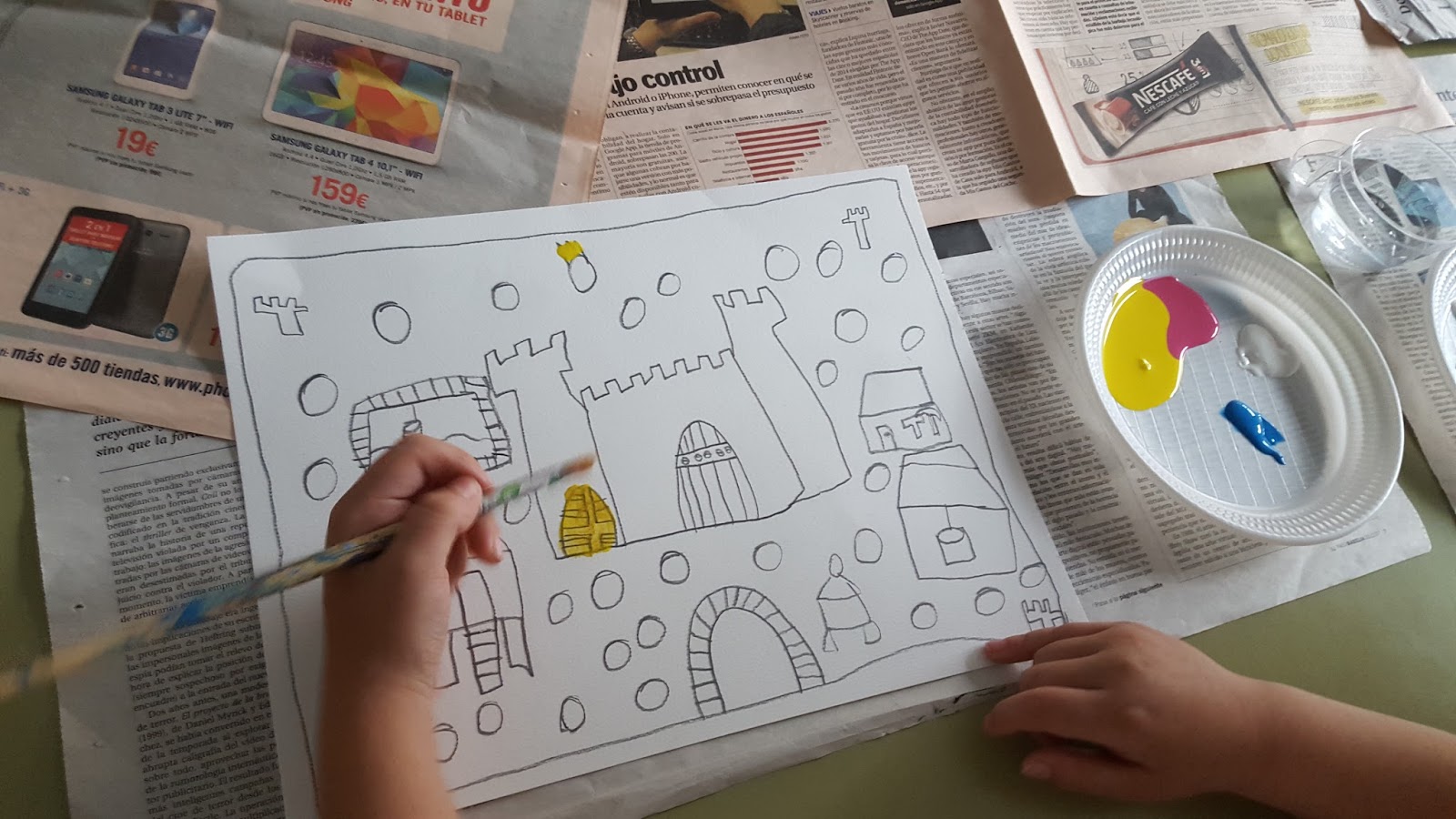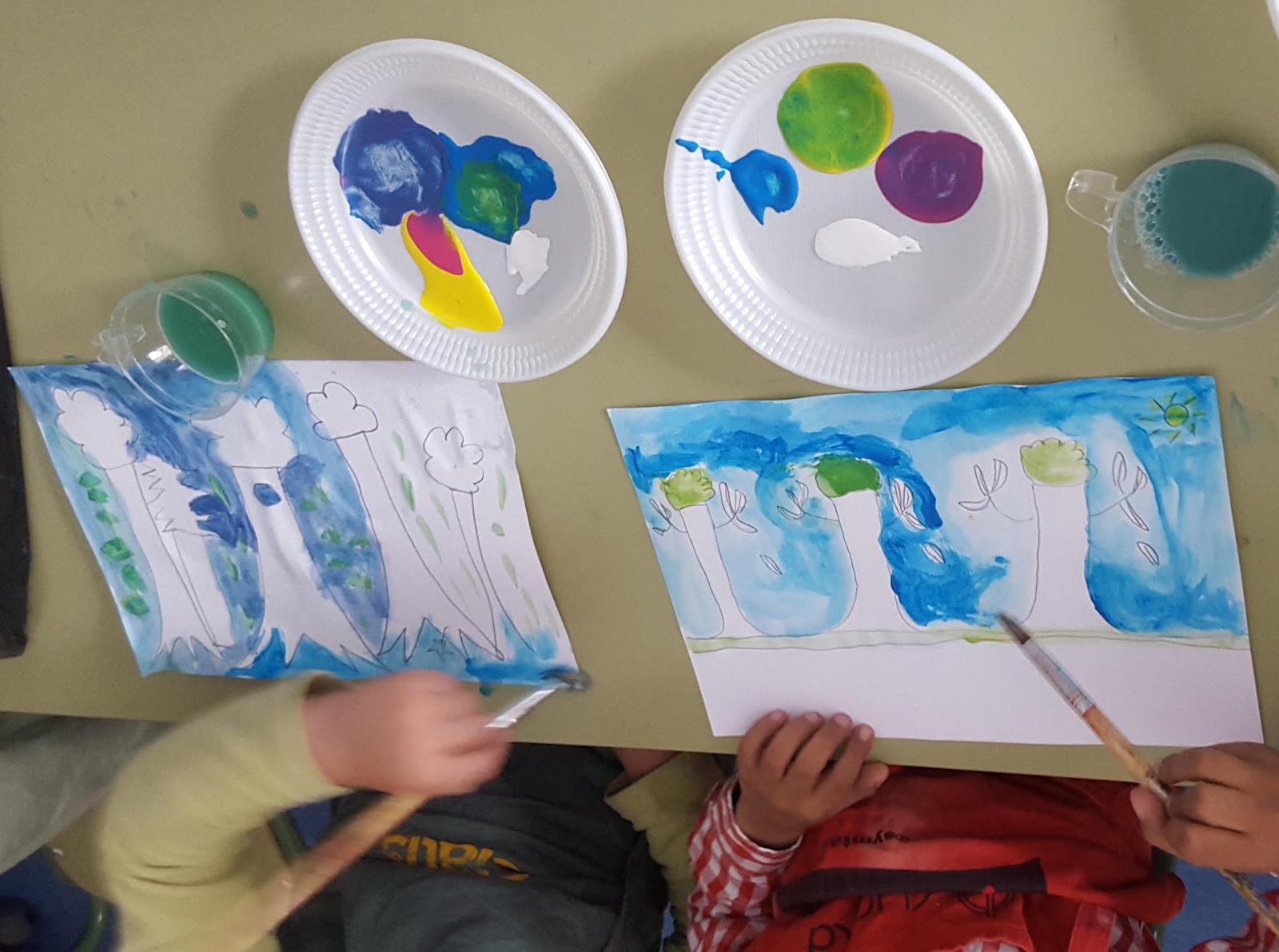 Mirad cómo lo hemos hecho: dibujando, mezclando y luego aplicando la acuarela: