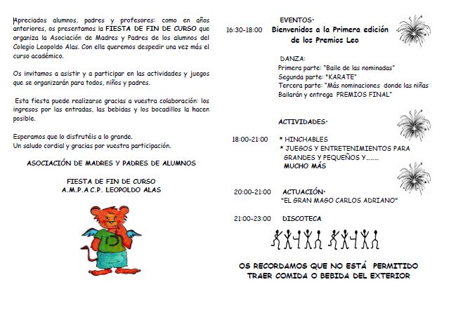 Sin categoríaFIESTA FIN DE CURSO 2016, Sábado 11 de Junio de 2016 7 junio, 2016 ampaleopoldo Como todos los años, os dejamos la información de la Fiesta Fin de Curso de 2016 Compártelo: Compartir en X (Se abre en una ventana nueva) X Comparte en Facebook (Se abre en una ventana nueva) Facebook Me gusta Cargando... Relacionado