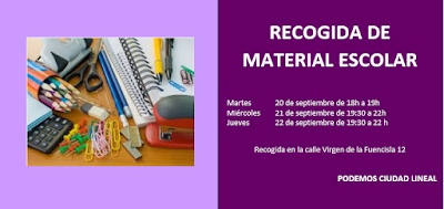Nos han hecho llegar información sobre una campaña de intercambio de material escolar en nuestro distrito de Ciudad Lineal. Adjuntamos información por si resulta de interés para vosotros: