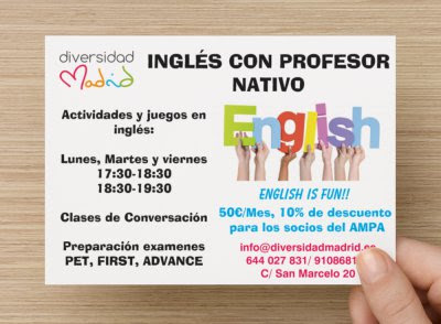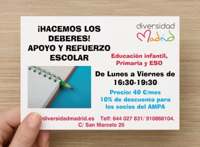 Estimadas familias: hemos firmado un acuerdo de COLABORACIÓN con DIVERSIDADMADRID, entidad educativa que se encuentra en c/ San Marcelo 20, muy cerca de nuestro Colegio.