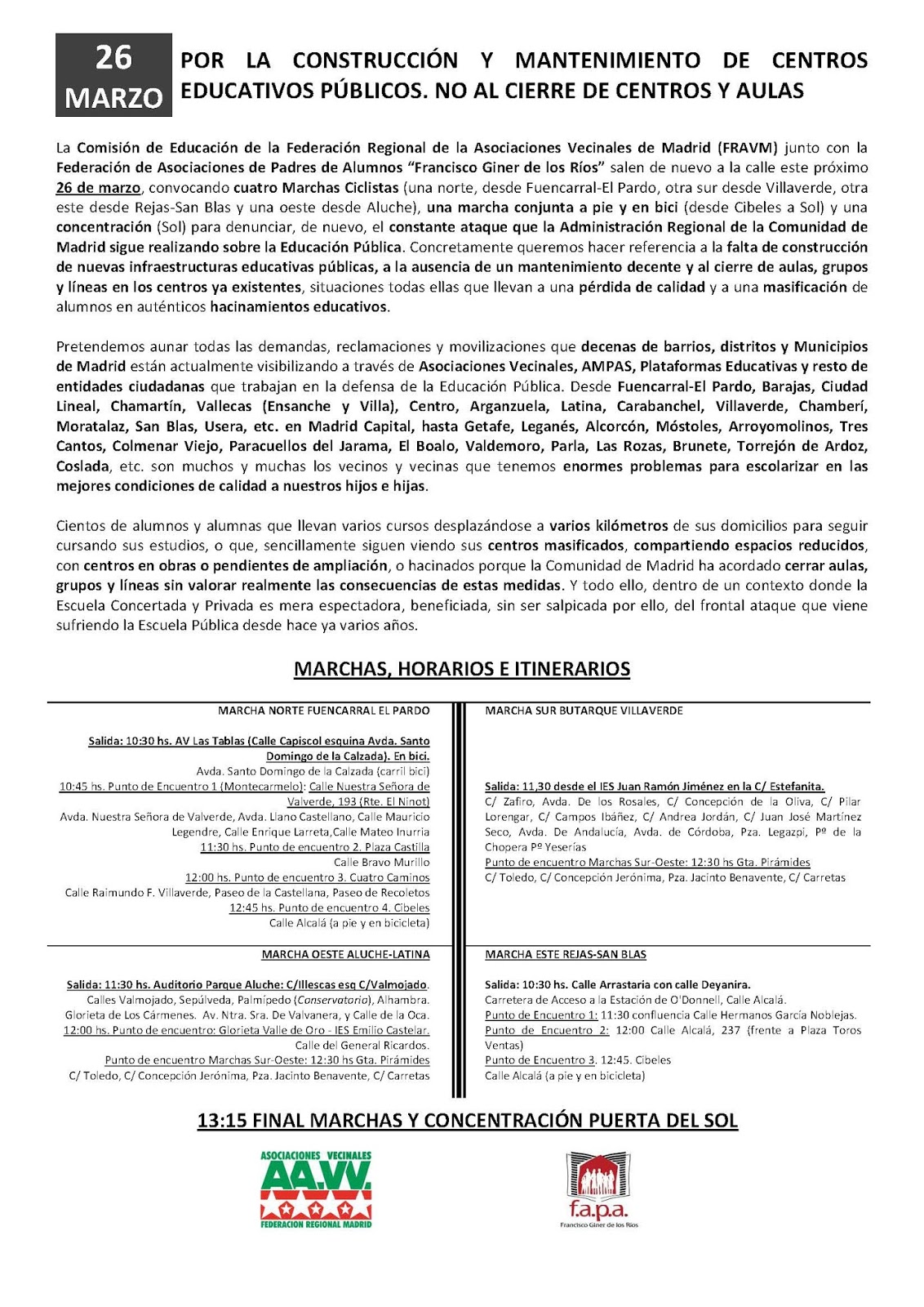 - El recorrido y la concentración han sido debidamente autorizados por Delegación de Gobierno. Efectivos de policía municipal y policía nacional velarán por la seguridad de l@s participantes durante todo el trayecto.