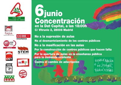 Desde la PLATAFORMA PARA LA ESCUELA PÚBLICA DE CIUDAD LINEAL nos han hecho llegar esta convocatoria.