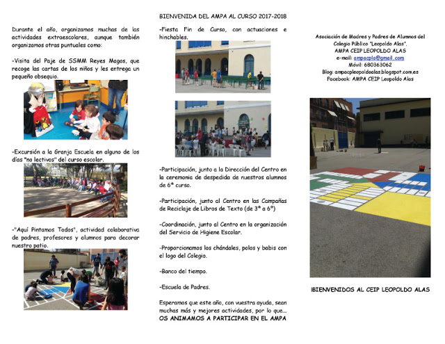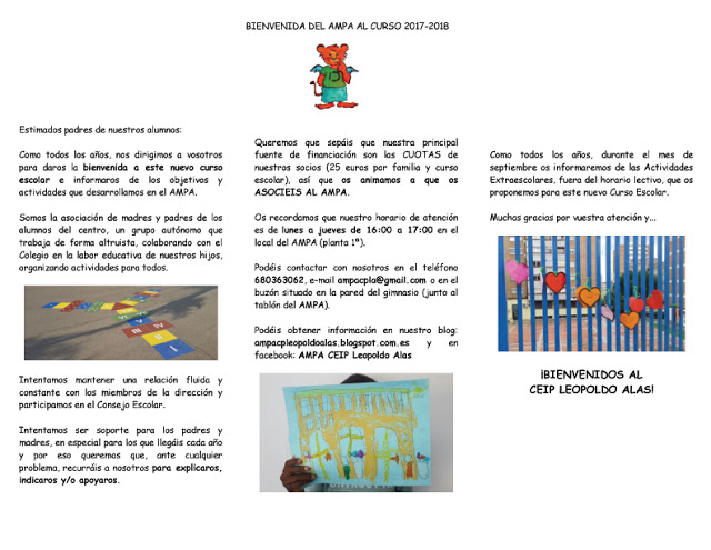 Os dejamos el tríptico que hemos elaborado este año para daros la bienvenida al nuevo curso escolar, tanto a los padres veteranos, como a los nuevos padres.