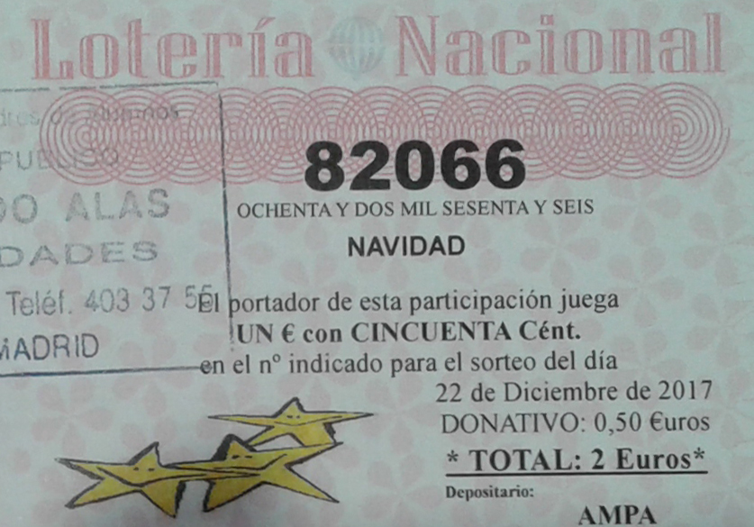 Os recordamos que, como todos los años, tenemos a vuestra disposición la LOTERÍA DEL AMPA, para el Sorteo de Navidad.