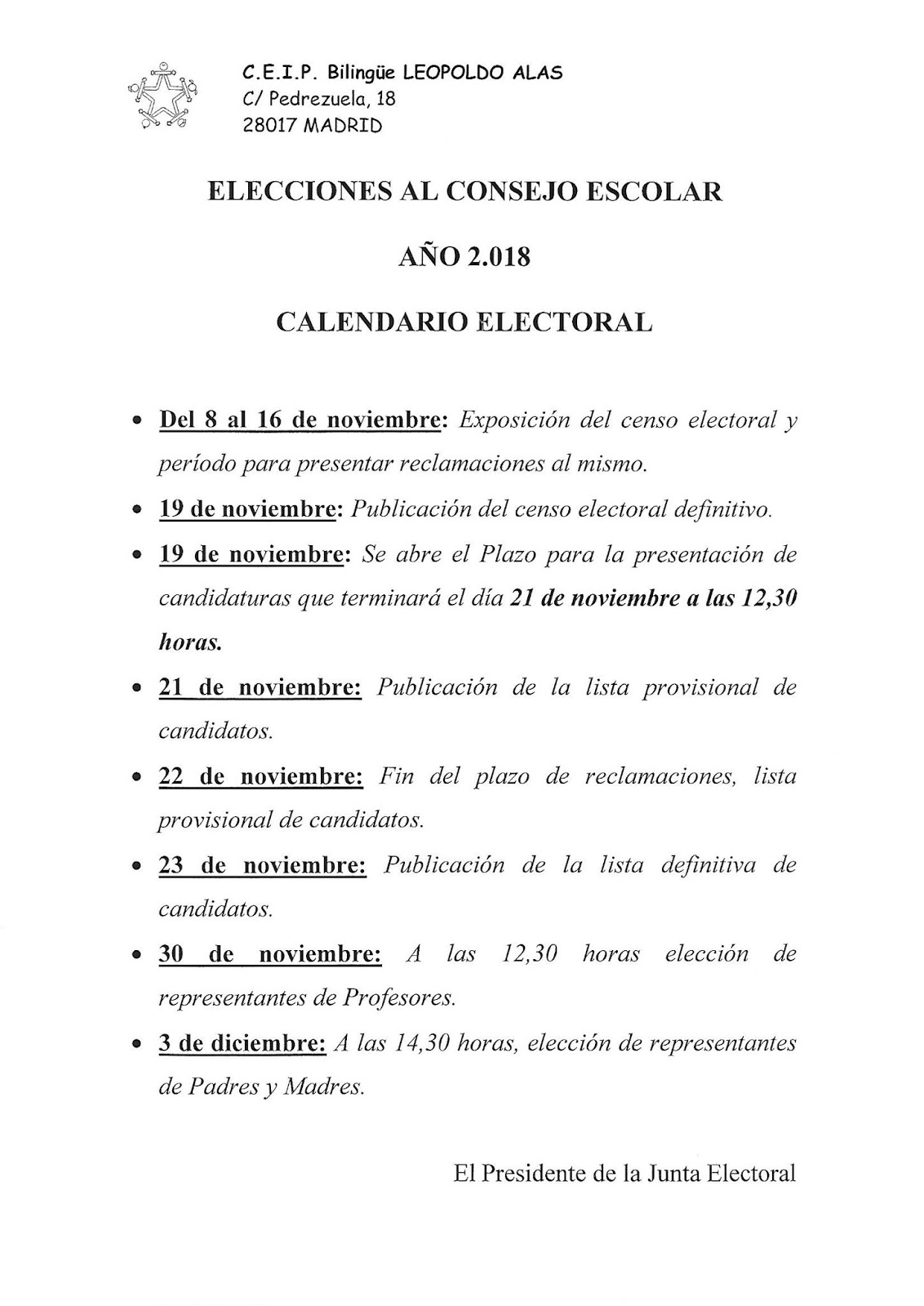 Queridas familias, adjuntamos el calendario facilitado por el Colegio para las elecciones de representantes al consejo escolar.