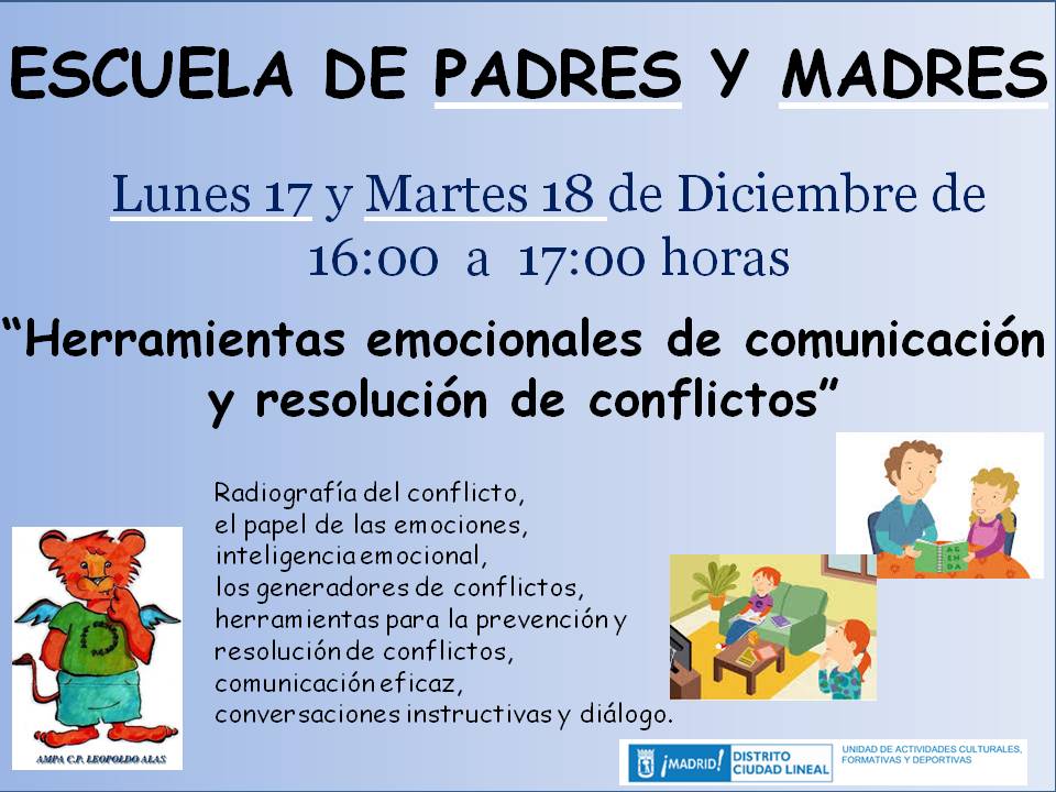 Queridas familias: en nuestro Proyecto 2018 hemos incluido una Escuela de Padres, dividida en dos sesiones, con el contenido que se refleja en la información incluida a continuación. Se trata de una escuela impartida por la empresa NUDOS, con experiencia amplia en este tipo de Formación. Seguro que resulta de interés para todos.