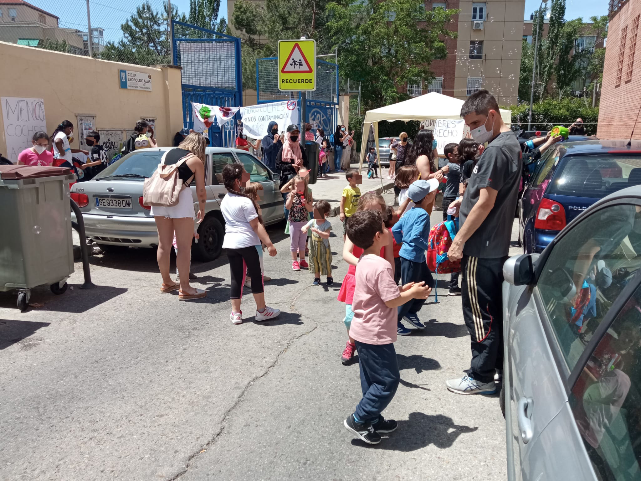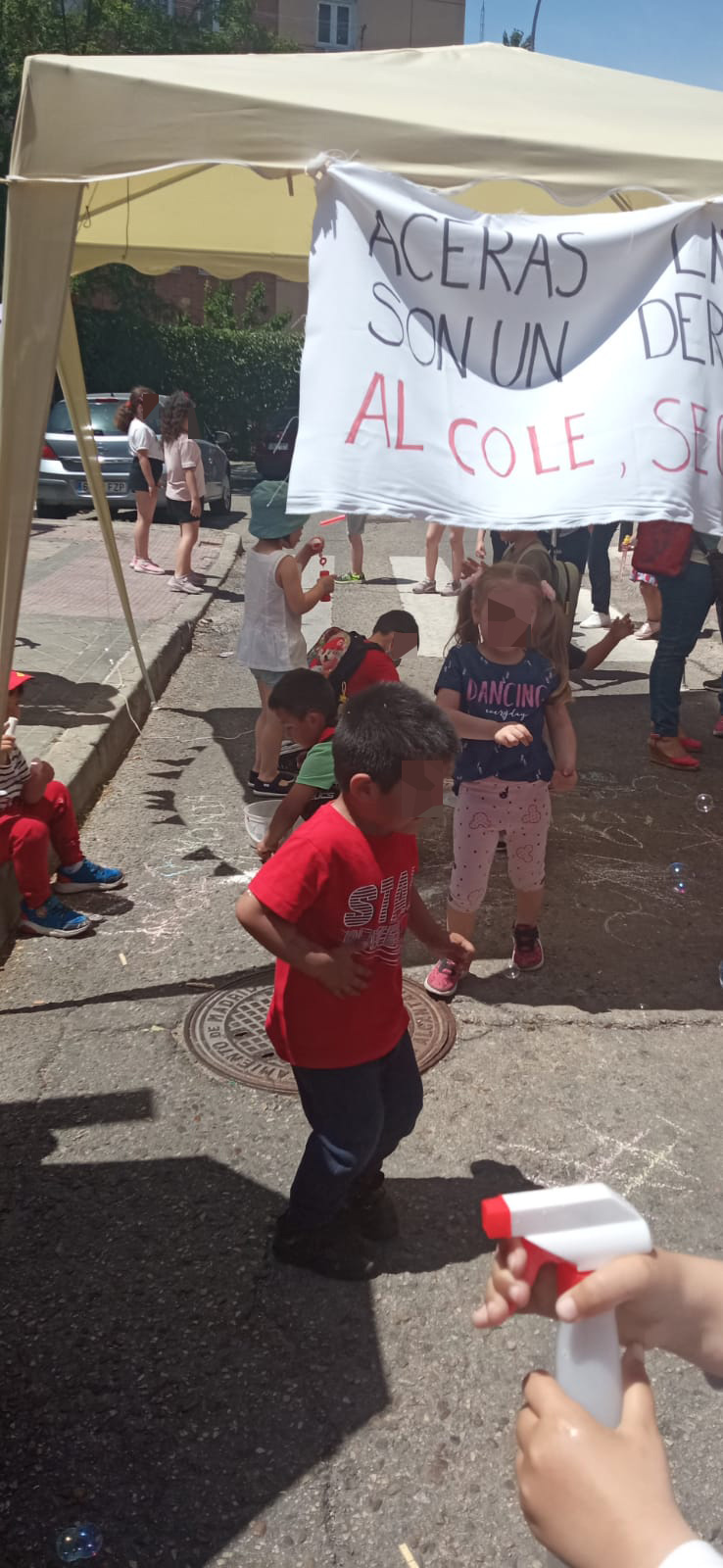Pedimos todo esto jugando y correteando delante del colegio. Pero nada de lo que pedimos es un juego. Pedimos al concejal del distrito de Ciudad Lineal, Ángel Niño, que amplíe las aceras. Pedimos a al concejal del Ayuntamiento responsable de la movilidad, Borja Carabante, que se proponga peatonalizar la calle Pedrezuela, que instale fuentes y árboles delante del colegio, bancos para que los abuelos se puedan sentar…