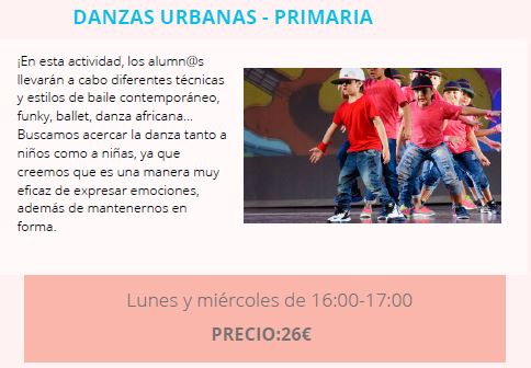 «DANZAS URBANAS». Actividad a realizar en el gimnasio del centro (ver información English Plus).