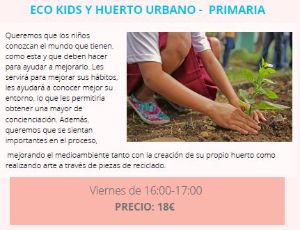 «ECO KIDS Y HUERTO URBANO». Actividad en el huerto escolar (ver información English Plus).