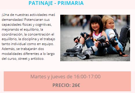 «PATINAJE». Actividad que se llevará a cabo en el patio del colegio (ver información English Plus).