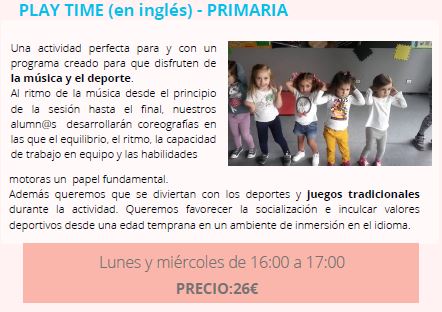 «PLAY TIME». Actividad bilingüe que se llevará a cabo en el patio del colegio (ver información English Plus).