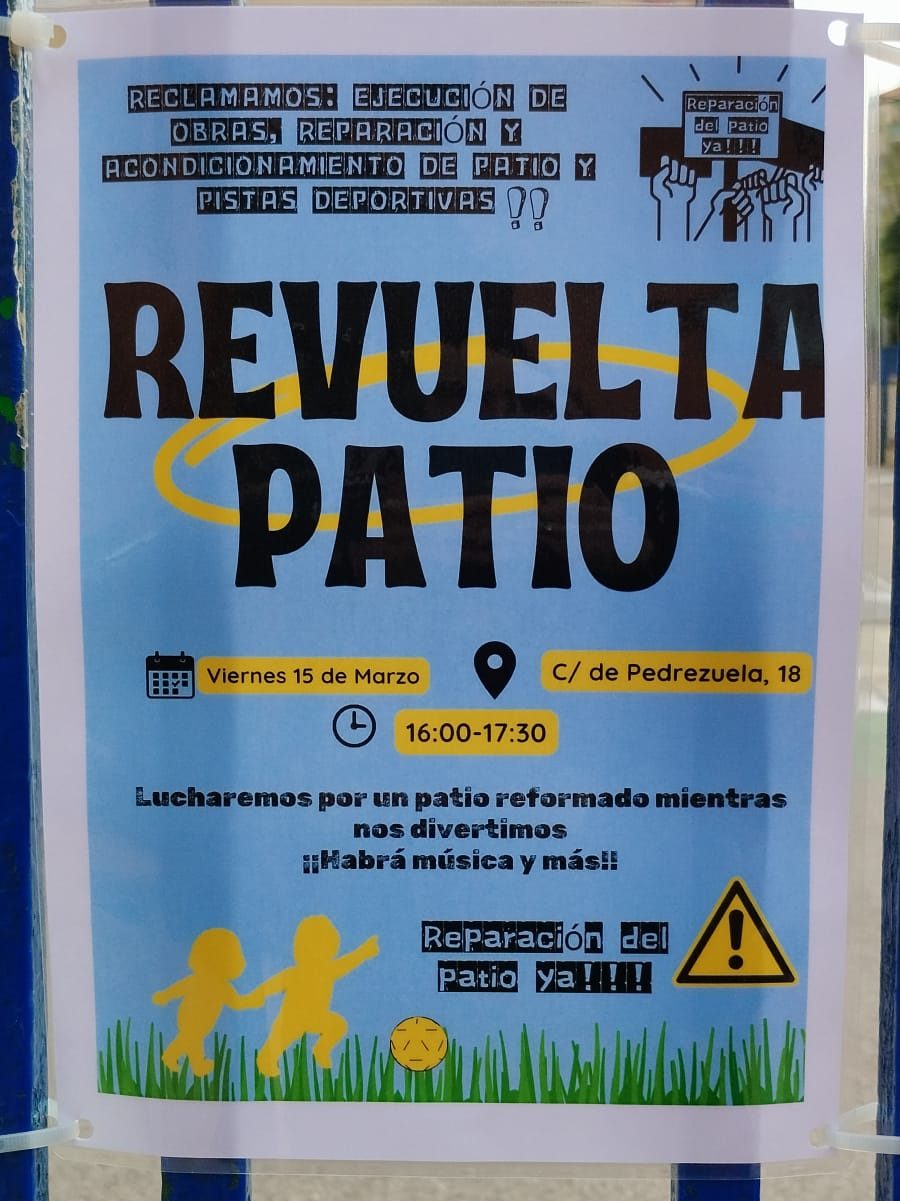 Ha llegado el momento de alzar la voz y exigir un cambio en nuestro querido patio escolar. La iniciativa «Revuelta Patio» ha sido lanzada con el objetivo de presionar a las autoridades escolares para que se lleven a cabo las reformas y arreglos necesarios en este espacio tan importante para nuestra comunidad.
