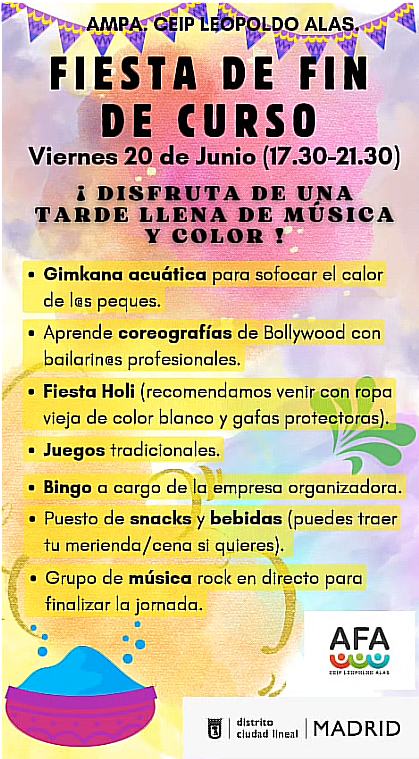 Las familias de la AFA del Leopoldo Alas hemos organizado con mucha ilusión la fiesta de fin de curso para todxs.